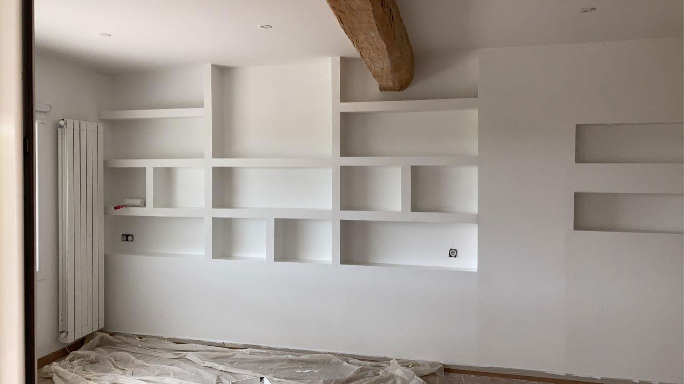 Nous réalisons la pose de plaques de plâtre, faux plafonds, cloisons, doublages, isolation intérieure, créations de pièces, habillages, trappes de visite et finitions d’enduits. Nous intervenons autant en rénovation que lors d’aménagements intérieurs.