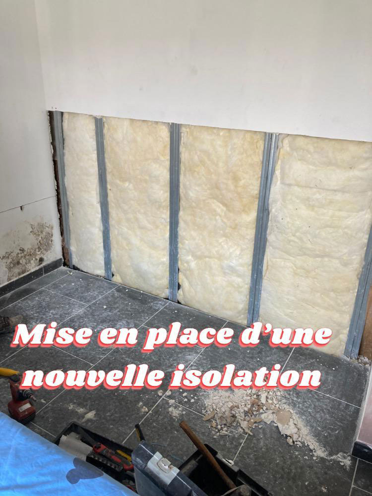 Dans le cas d’un dégât des eaux, nous intervenons également pour assainir vos murs. Nous remplaçons l’isolation et les BA13 endommagés.